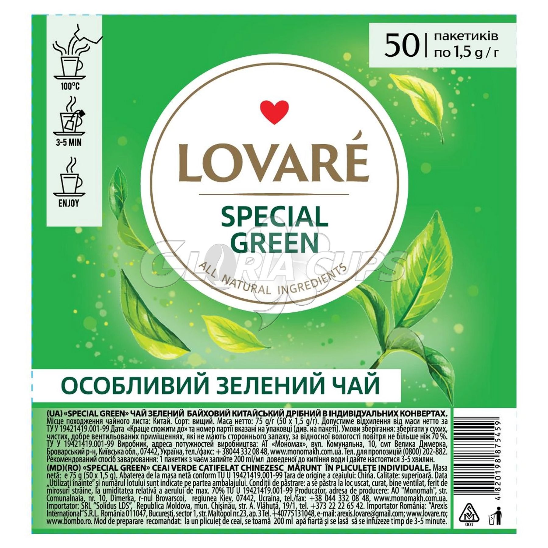 Чай зелений пакетований LOVARE Special Green 50 шт