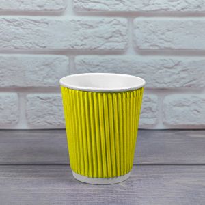 Гофростакан 185 мл жовтий це гофростакан Ripple 185 мл має хвилясту зовнішню поверхню, призначену для ізоляції змісту високих температур. Цей стиль дизайну дозволяє зберігати гарячі напої теплими відносно тривалий час, при цьому абсолютно комфортно чашку Ripple можна тримати в руках, не побоюючись опіку. Ємність дуже стійка, виключає протікання. Замовити одноразові гофровані стаканчики оптом - значить забезпечити своїй кав'ярні гарантований успіх і популярність серед любителів швидкої чашечки кави «з собою». Стильні стаканчики з рифленою поверхнею, завдяки своїй унікальній конструкції і яскравому зовнішньому вигляду стають незамінні в будь-яких точках швидкого харчування, кафе, і ресторанах. У нас можна купити гофростакани 185 мл перевіреної якості за вигідними цінами з доставкою по всій території України.