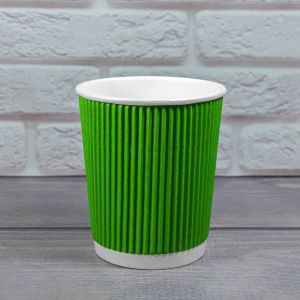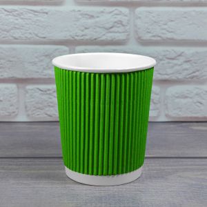Гофростакан 300 мл зелений - це одноразові гофростакани краще рішення для зручного і економічного способу подачі гарячих і холодних напоїв на відкритому повітрі, вечірці, бізнес-конференції, для використання в ресторанах, кафе, в офісах і точках фастфуду. Одноразові Ripple склянки мають різні розміри, починаючи від невеликих чашок 110 мл до великих Пінту на 500 мл. Одноразові паперові стаканчики 300 мл купити які можна в один клік на нашому сайті розроблені спеціально для кави, чаю та інших гарячих напоїв. Завдяки своїй двошаровості вони прекрасно захищають руки від перегріву, дуже стійкі, не деформуються, довго зберігають напій, що не протікає. Чашки Ripple 300 мл є економічними, функціональними, відмінно виглядають на вітринах кав'ярень і кафе які мають різні порції кави для подачі. Ми пропонуємо купити гофростакани на 300 мл оптом і в роздріб, в наявності різноманітні варіанти колірної гами, які задовольнять будь-які естетичні потреби клієнтів.