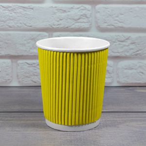 Гофростакан 300 мл жовтий - це одноразові гофростакани краще рішення для зручного і економічного способу подачі гарячих і холодних напоїв на відкритому повітрі, вечірці, бізнес-конференції, для використання в ресторанах, кафе, в офісах і точках фастфуду. Одноразові Ripple склянки мають різні розміри, починаючи від невеликих чашок 110 мл до великих Пінту на 500 мл. Одноразові паперові стаканчики 300 мл купити які можна в один клік на нашому сайті розроблені спеціально для кави, чаю та інших гарячих напоїв. Завдяки своїй двошаровості вони прекрасно захищають руки від перегріву, дуже стійкі, не деформуються, довго зберігають напій, що не протікає. Чашки Ripple 300 мл є економічними, функціональними, відмінно виглядають на вітринах кав'ярень і кафе які мають різні порції кави для подачі. Ми пропонуємо купити гофростакани на 300 мл оптом і в роздріб, в наявності різноманітні варіанти колірної гами, які задовольнять будь-які естетичні потреби клієнтів.