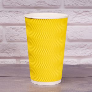 Гофростакан Ripple 500 мл жовтий - ці гофростакани стають все більш популярним, вони чудово підійдуть для кави, прохолодного мохіто або порції гарячої кукурудзи. Склянки Ripple мають багатошарові стінки, що робить їх максимально стійкими і ідеальними для гарячих напоїв, оскільки усуває необхідність в додатковому захисті чашки. На нашому сайті можна купити гофровані склянки 500 мл в різному оформленні, а також відповідні кришки для склянок.