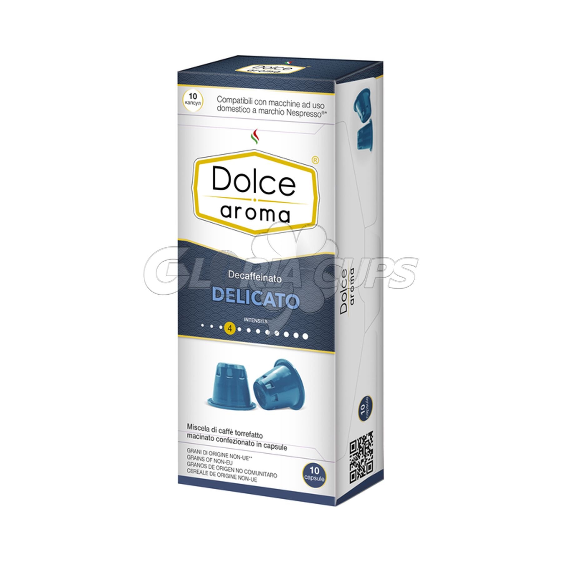 Кава в капсулах Nespresso Dolce Aroma Delicato - завдяки спеціальній обробці та технології обсмажування, містить мінімальну кількість кофеїну. Середнє обсмажування надає стійкий аромат та дозволяє зберегти м’який смак кави з делікатною кислинкою.