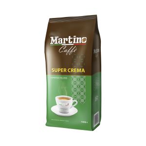 Кава в зернх Martino Super Crema 1 kg - має густу пінку крема, міцний аромат і високий вміст кофеїну. Приємним сюрпризом буде довготривалий шоколадно-карамельний післясмак. Кава Мартіно Супер Крема ідеально підійде для приготування міцного еспрессо, а також прекрасно поєднується з молоком для приготування капучіно і латте.