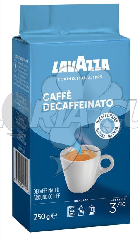 Кава Lavazza Decaffeinato - один з кращих сортів кави, який не містить кофеїн. Досконалий баланс між м'якими бразильськими та азіатськими сортами арабіки та робусти. Трохи посилене обсмажування надає суміші хорошу густоту. Промивання зерен в спеціальних установках дозволяє видалити з кави 99,9% кофеїну, зберігаючи при цьому інші властивості в незмінному вигляді. Кава Lavazza Decaffeinato - це кава для будь-якого часу доби. Від першої чашки рано вранці і до останньої чашки латте ввечері. Кава Lavazza Decaffeinato підходить для всіх видів кавового обладнання. Кава середнього обсмаження. Співвідношення 70% робуста, 30% арабіка.