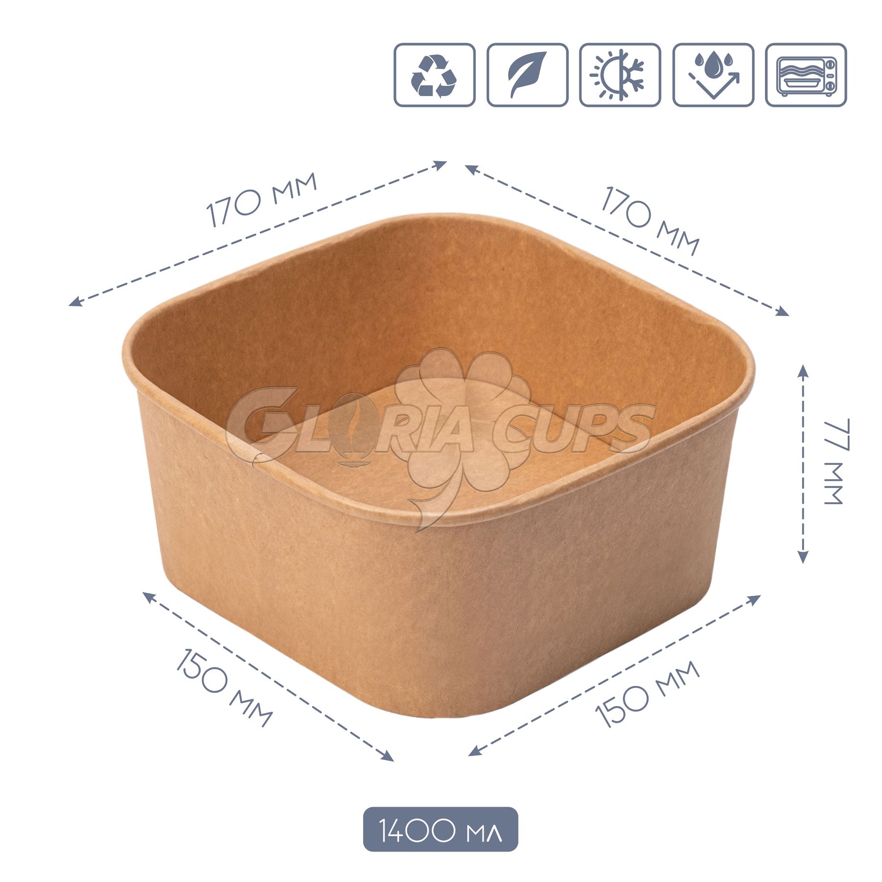 Контейнер паперовий для салату квадратний 1400 мл 170*170*77 мм КРАФТ