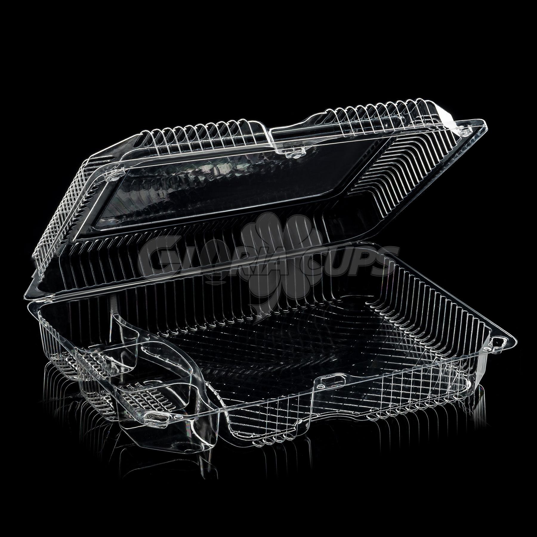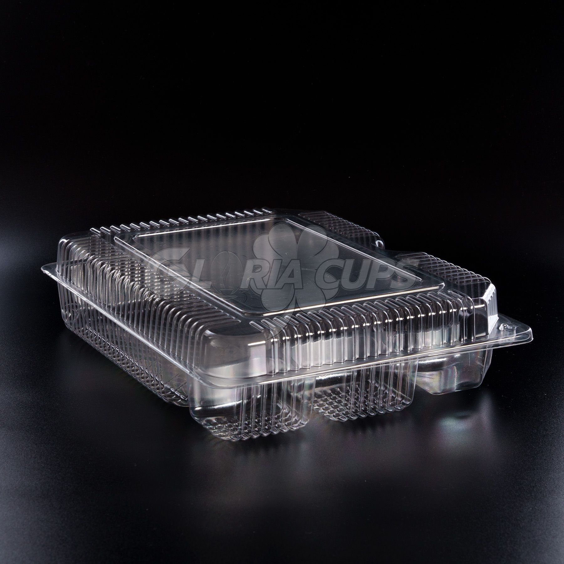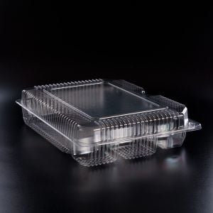 Низ контейнера - прозорий; довжина - 266 мм, ширина - 205 мм, висота - 37 мм, об'єм - 1065 мл. Кількість в ящику - 120 шт.