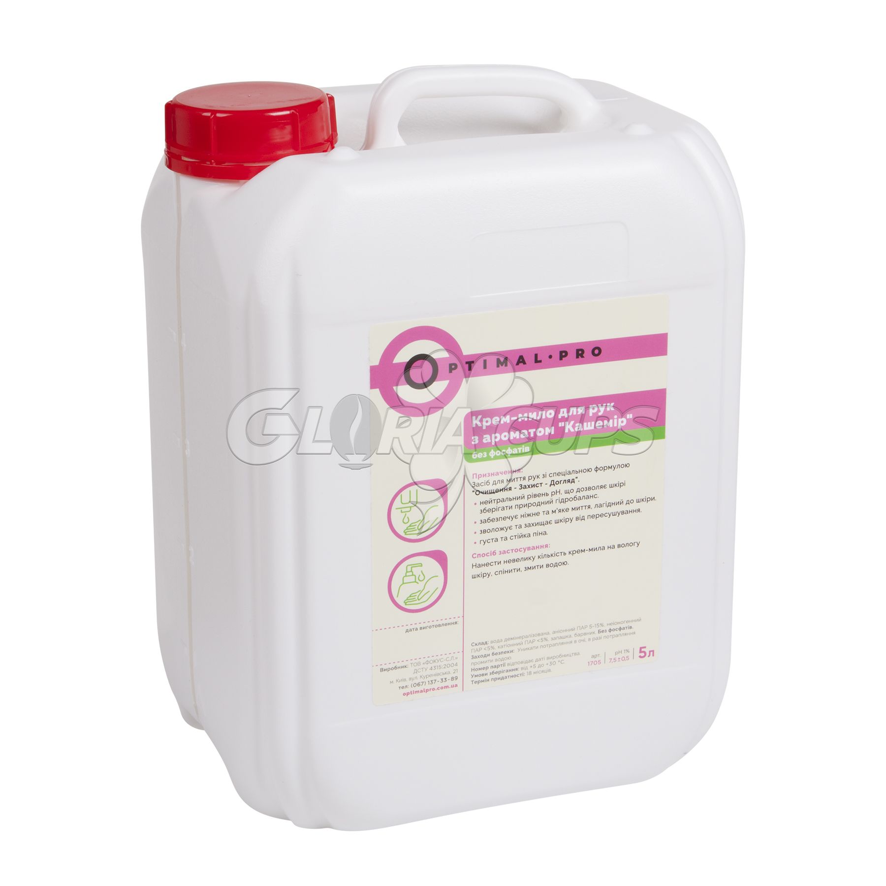 Крем-мило для рук Кашемір без фосфатів OPTIMAL-PRO 5 л - ідеальний засіб для очищення шкіри рук і турбота про своє здоров'я, персоналу і клієнтів.