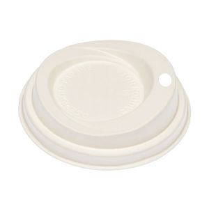 Герметична біорозкладна кришка молочного кольору з цукрової тростини щільно закривається, не дозволяє вмісту вилитися зі стакану. Незамінна під час замовлення напоїв на винос. Еко кришки швидко та легко утилізується без шкоди для довкілля.