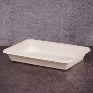 Посуд з кукурудзяного крохмалю - альтернатива пластиковому одноразовому посуду. Головна перевага посуду з кукурудзяного крохмалю – відсутність шкідливих викидів у навколишнє середовище. Посуд достатньо щільний та герметичний,витримує високу та низьку температури(до +100°C та –20°C). Придатний для використання в мікрохвильових печах, а також зберігання у холодильних та морозильних камерах. Гарячі продукти не викличуть порушення цілісності та втрати міцності посуду. Зберігає готові гарячі подукти теплими довгий проміжок часу, що є актуальним для доставки.