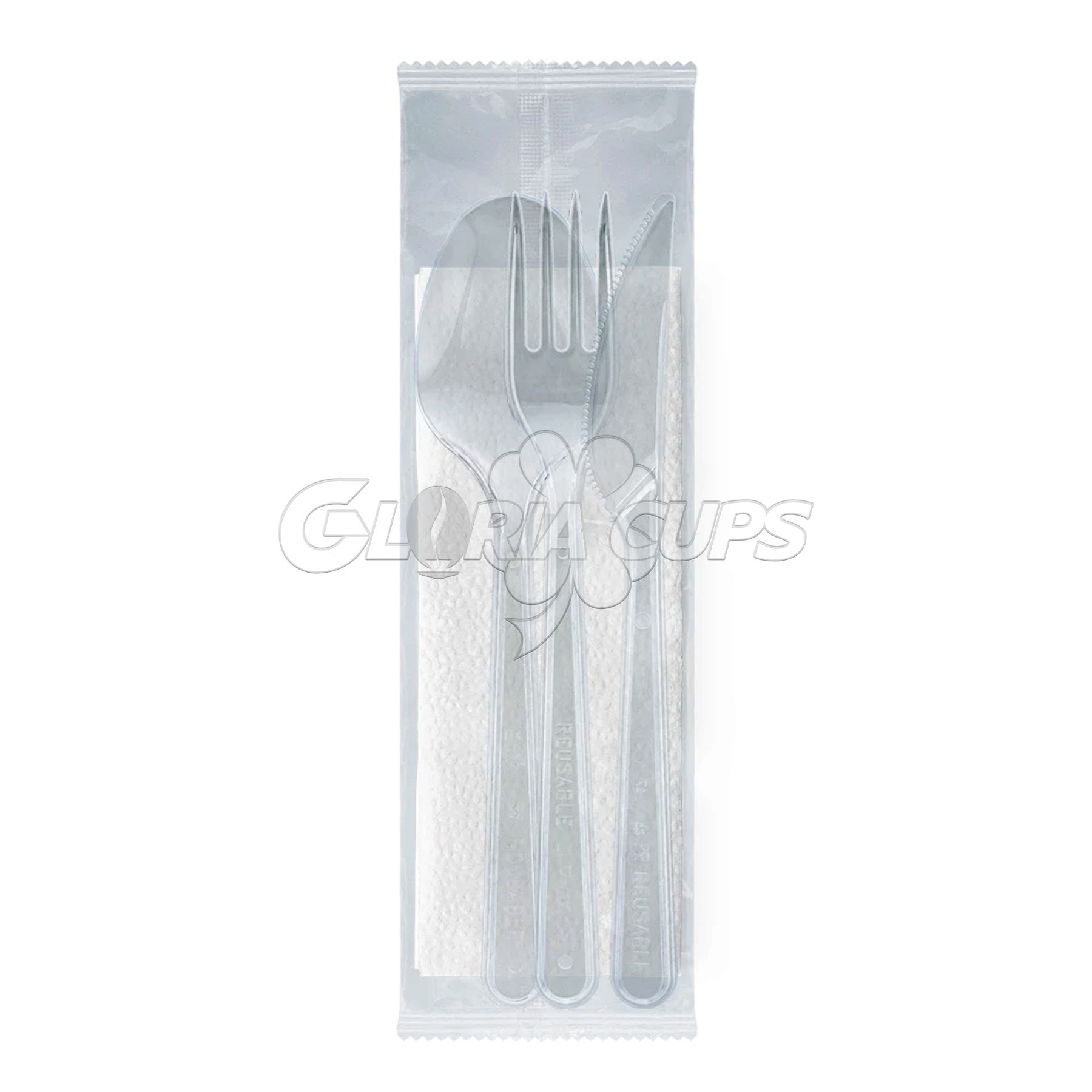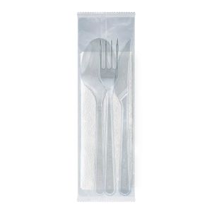 Набір виделка 18 см + ложка 18 см + ніж 18 см + серветка в індивід. упак. ПРОЗОРІ 200 шт