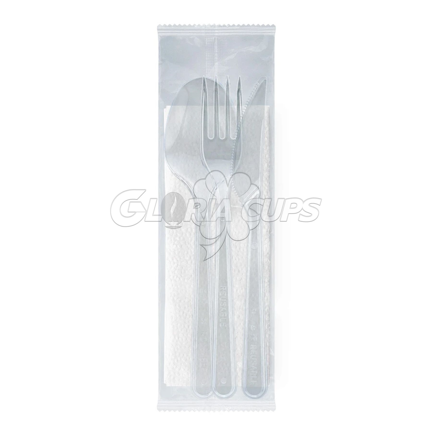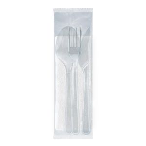 Набір виделка 18см+ложка 18см+ніж18см+серветка Standart в індивід. упак. 100шт ПРОЗОРІ