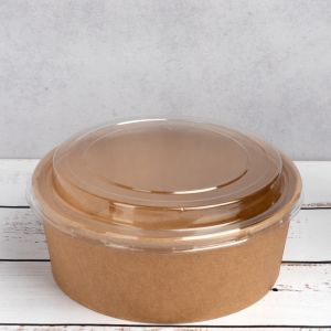 Контейнер паперовий для салату з кришкою РЕТ 1300 мл d-185 мм h-68 мм КРАФТ