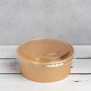 Контейнер паперовий для салату з кришкою РЕТ 750 мл d-145 мм h-60 мм КРАФТ