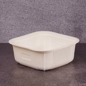 Посуд з кукурудзяного крохмалю - альтернатива пластиковому одноразовому посуду. Головна перевага посуду з кукурудзяного крохмалю – відсутність шкідливих викидів у навколишнє середовище. Посуд достатньо щільний та герметичний,витримує високу та низьку температури(до +100°C та –20°C). Придатний для використання в мікрохвильових печах, а також зберігання у холодильних та морозильних камерах. Гарячі продукти не викличуть порушення цілісності та втрати міцності посуду. Зберігає готові гарячі подукти теплими довгий проміжок часу, що є актуальним для доставки.
