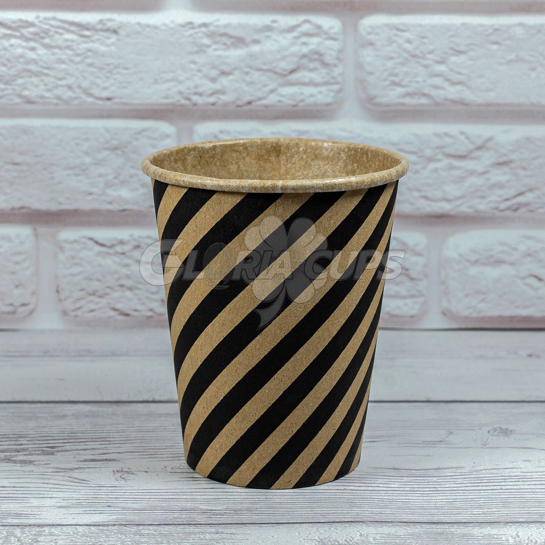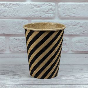 Стакан паперовий КРАФТ SPIRAL 250 мл - виготовляється на професійному обладнанні з якісного харчового картону і обробляється перевіреними безпечними чорнилами. Внутрішню стінку картонної склянки захищає поліетиленове покриття, що дозволяє йому не протікати, надійно зберігаючи рідину досить довго. Споживач може спокійно залишити на пару хвилин гарячий чай, не турбуючись що одноразовий посуд залишить неприємний слід на столі. Магазин пропонує досить різноманітні варіанти оформлення своєї продукції. Оптові поставки паперових стаканчиків 250 мл по Києву і всій Україні пропонуються для всіляких заходів, починаючи від дитячих свят і закінчуючи офіційними прийомами та іншими заходами.