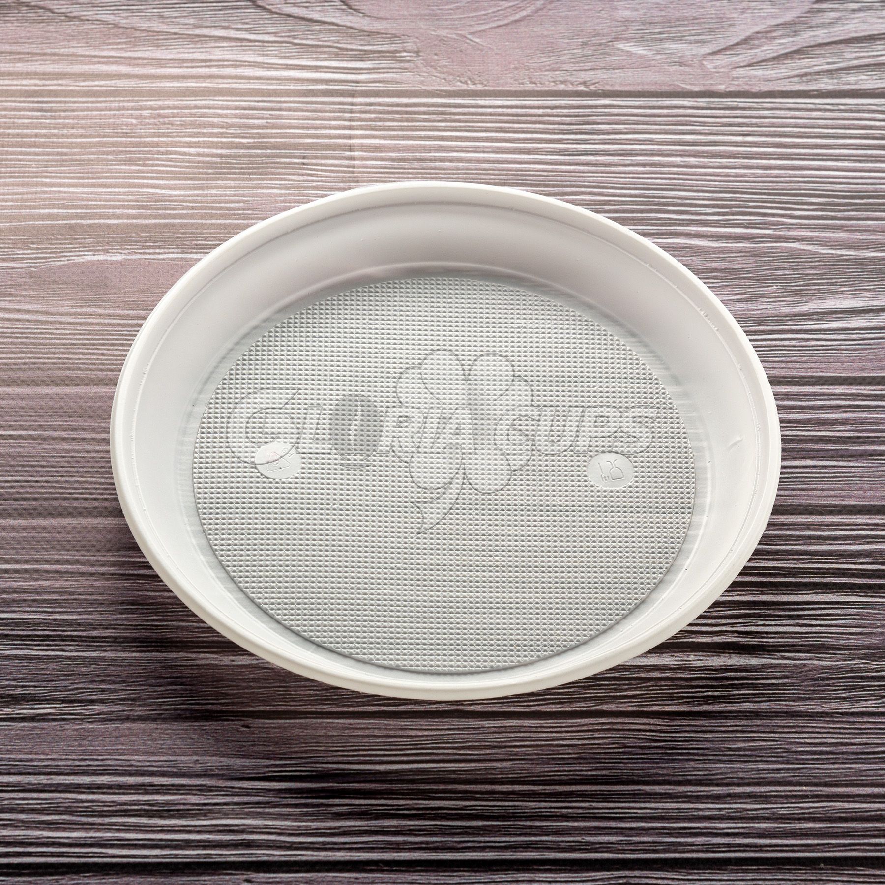Пропонуємо вам пластикову тарілку білого кольору, виготовлену з високоякісного харчового пластику.
