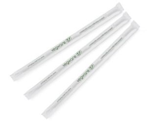 Трубочка біла Jumbo з зеленою смугою h=210 мм d=7 мм з ecovio в паперовій обгортці 300 шт
