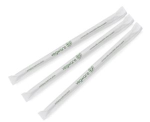 Трубочка біла Standard з зеленою смугою h=210 мм d=7 мм з ecovio в паперовій обгортці 500 шт