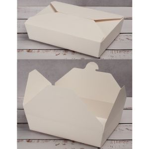 Ланч-бокс паперовий білий - використовується в ресторанах швидкого харчування і службах доставки, як контейнер для різних салатів, гарнірів, комплексних обідів. Підходить для гарячих і холодних продуктів харчування, підготовлених до вживання. Матеріал паперового ланч-боксу - картон - екологічно чистий і безпечний для здоров'я. Картон щільний і має тонкий шар ламінування по стінках, тому не руйнується, а при взаємодії з гарячими стравами не доставляє дискомфорту рукам. Дана позиція не потребує складання.