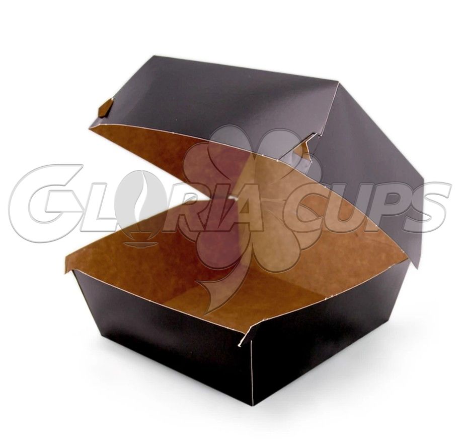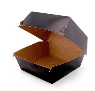 Упаковка картонна для гамбургера та бургера зібрана 118*118*86 мм КРАФТ/ЧОРНА