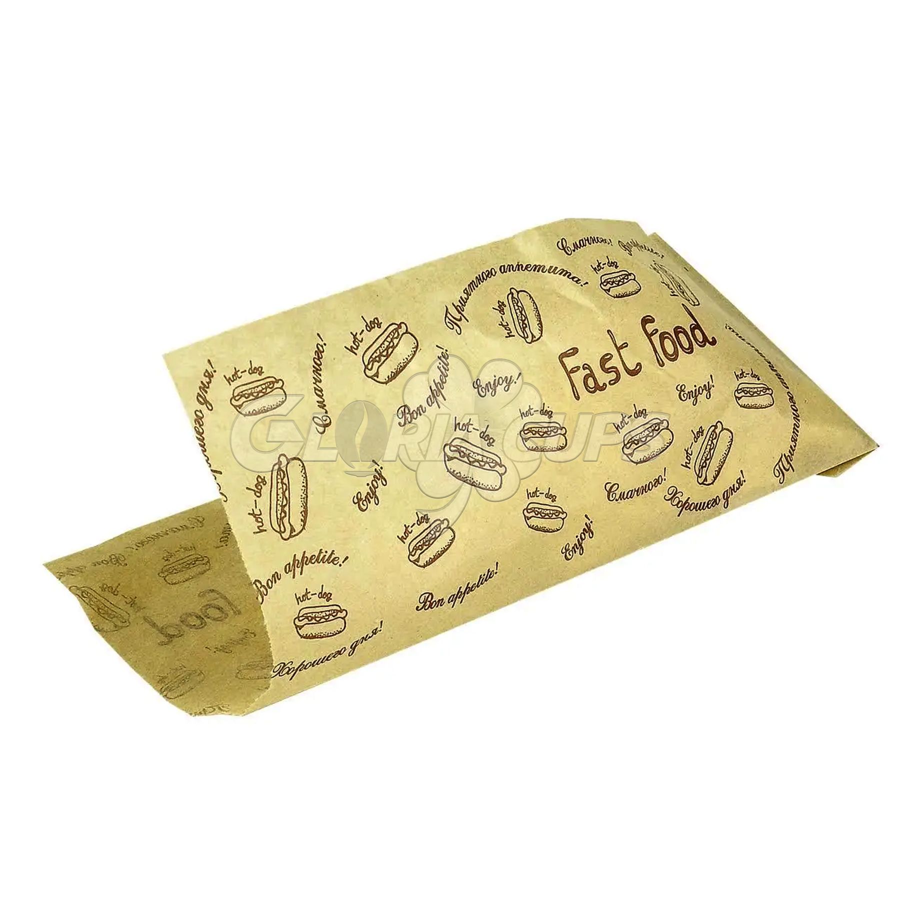 Упаковка паперова для хот-догів куточок 200*85*0 мм 40г/м2 КРАФТ малюнок
